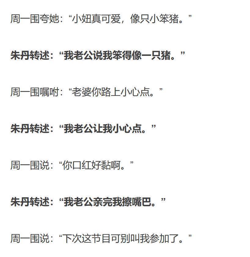 在各式节目上,朱丹没少共享她和周一围夫妻生涯中的相处细节,但因为抒发口头有问题,不但让我方成为了不被东谈主判辨的“娇妻”,周一围也被贴上“渣男”“大男人目的”的标签。